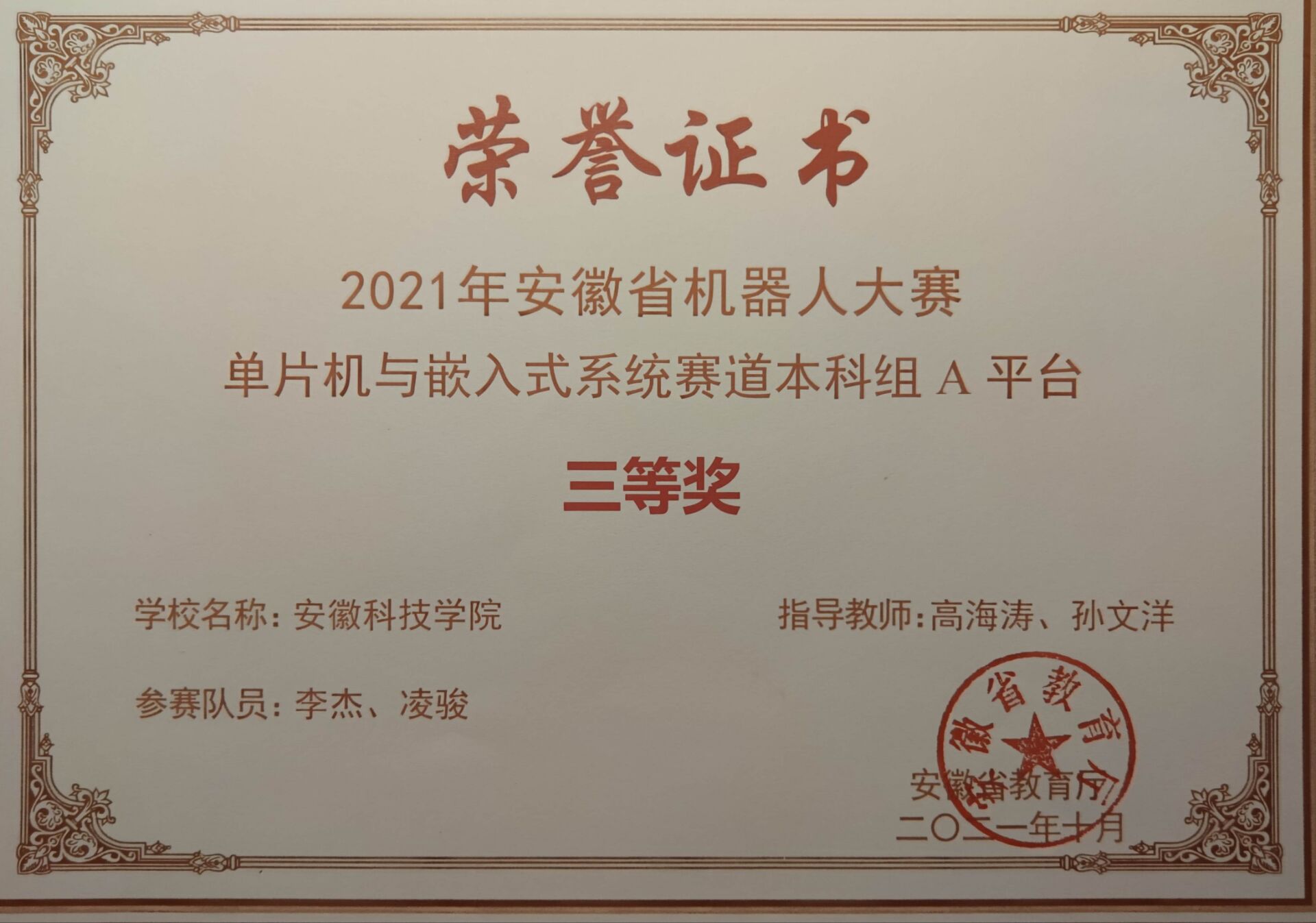 本科期间很荣幸参加了一些学科竞赛,感谢母校对学科竞赛的重视,感谢老师的大力支持与信任,感谢有那么一群志同道合的朋友一起打比赛。 {% swiper effect:cards %} {% endswiper %} 获奖统计 大学生智能车竞赛: 第十六届全国总决赛智慧餐厅组二等奖 第十六届电磁越野组安徽赛区三等奖 第十七届服务机器人组安徽赛区三等奖 第十七届智能视觉组安徽赛区二...